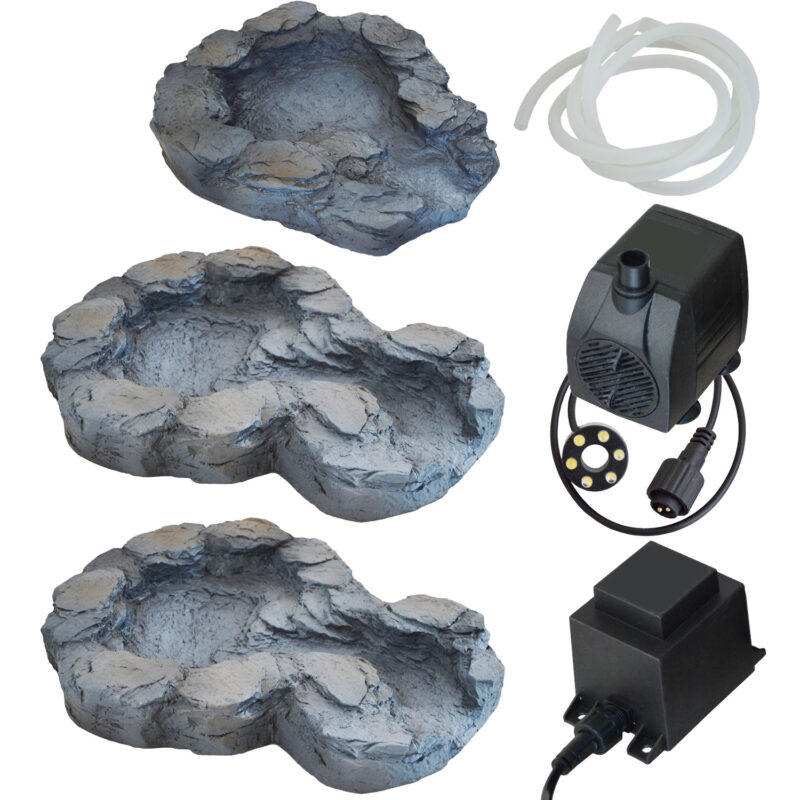 Bachlauf QUELLBACH II dunkel-grau, 3-teilig 230V-Pumpe und 1×6 weiß LED-Licht