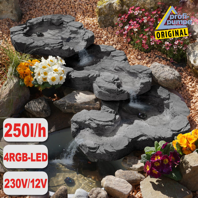 Bachlauf QUELLBACH II dunkel-grau, 3-teilig mit 4 RGB LED-Licht-230V