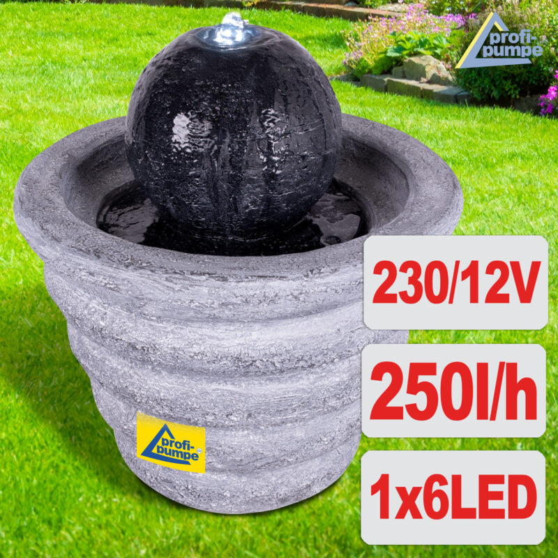 230V – Gartenbrunnen WOGEN-RAUSCH mit LED Licht