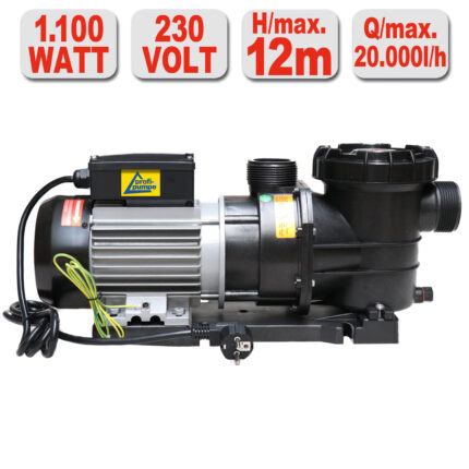 Hochwertige, energiesparende, leistungsstarke Filter- Schwimmbadpumpe Leistung 1100 Watt | Druck max. 1,2bar | Fördermenge 20.000l/h