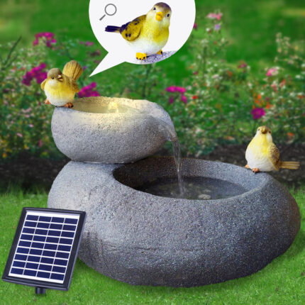 Solar – Gartenbrunnen & Wasserspiel “FELS-SCHALEN” mit Li-Ion-Akku