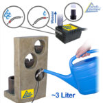 Poznámka: Frost kann zu Schäden am Gartenbrunnen und der Pumpe führen. Bei Frostgefahr muss der Gartenbrunnen und die Pumpe entleert werden, mit klarem Wasser gespült und trocken eingelagert werden. Dann haben Sie sehr lange Freude daran!