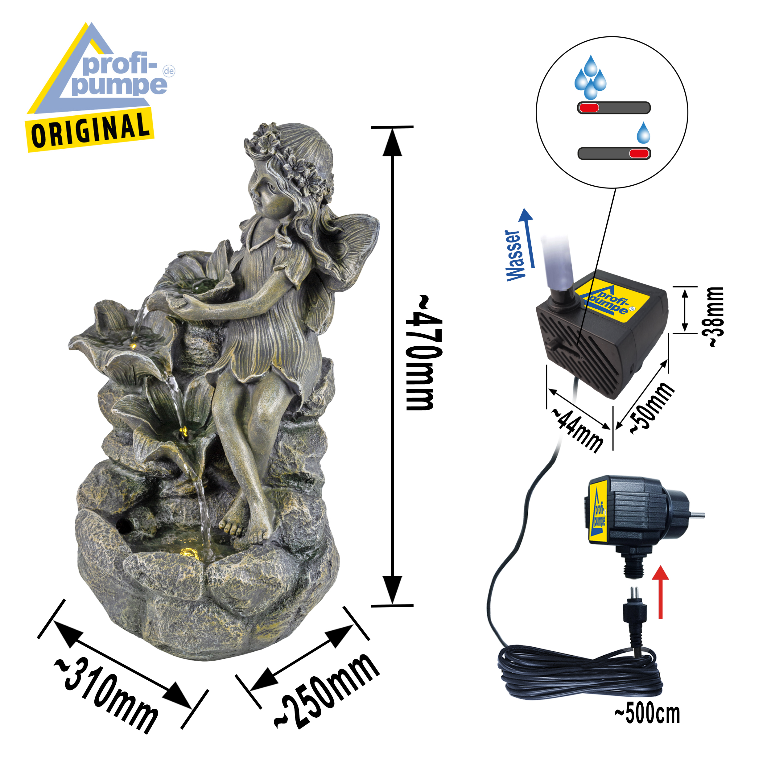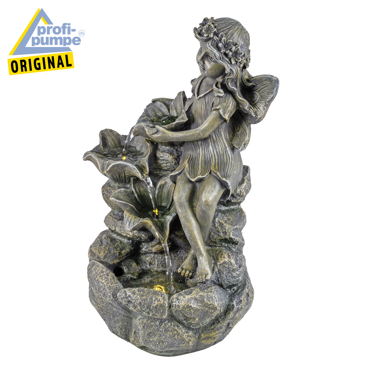 230V – Gartenbrunnen & Wasserspiel “BLÜTEN-FEE” mit LED-Licht