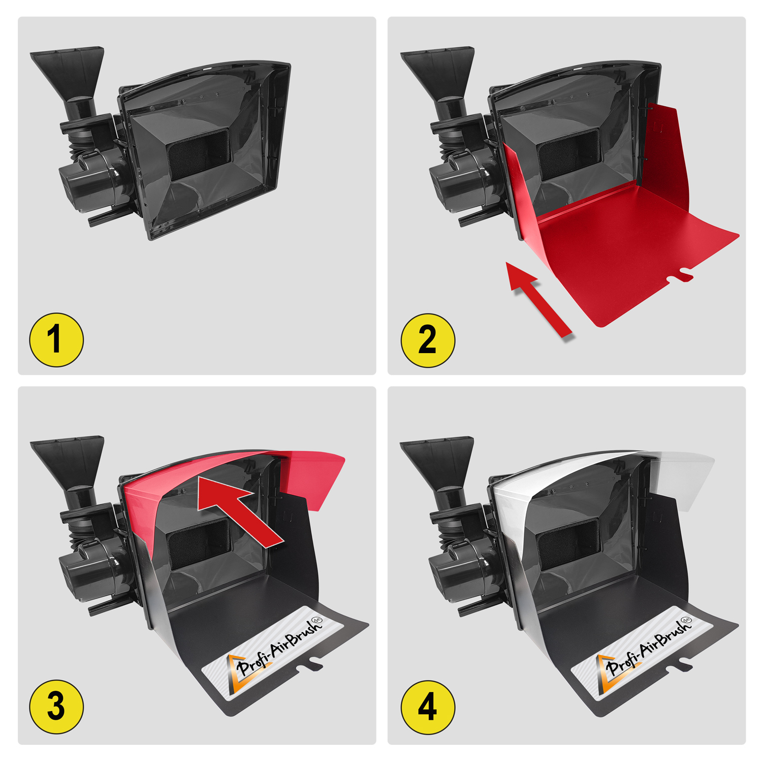 Absauganlage für Farbnebel mit austauschbarer Filtermatte und Tragegriff, inkl. Drehteller und Krokodilklemmen