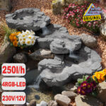 Teichpumpen-Set “OASIS 250-H”-Hybrid mit 230V-Anschluss, Solarbetrieb vorgesehen, 4Stck. 5-fach LED-RGB-Licht für Bachlauf QUELLBACH