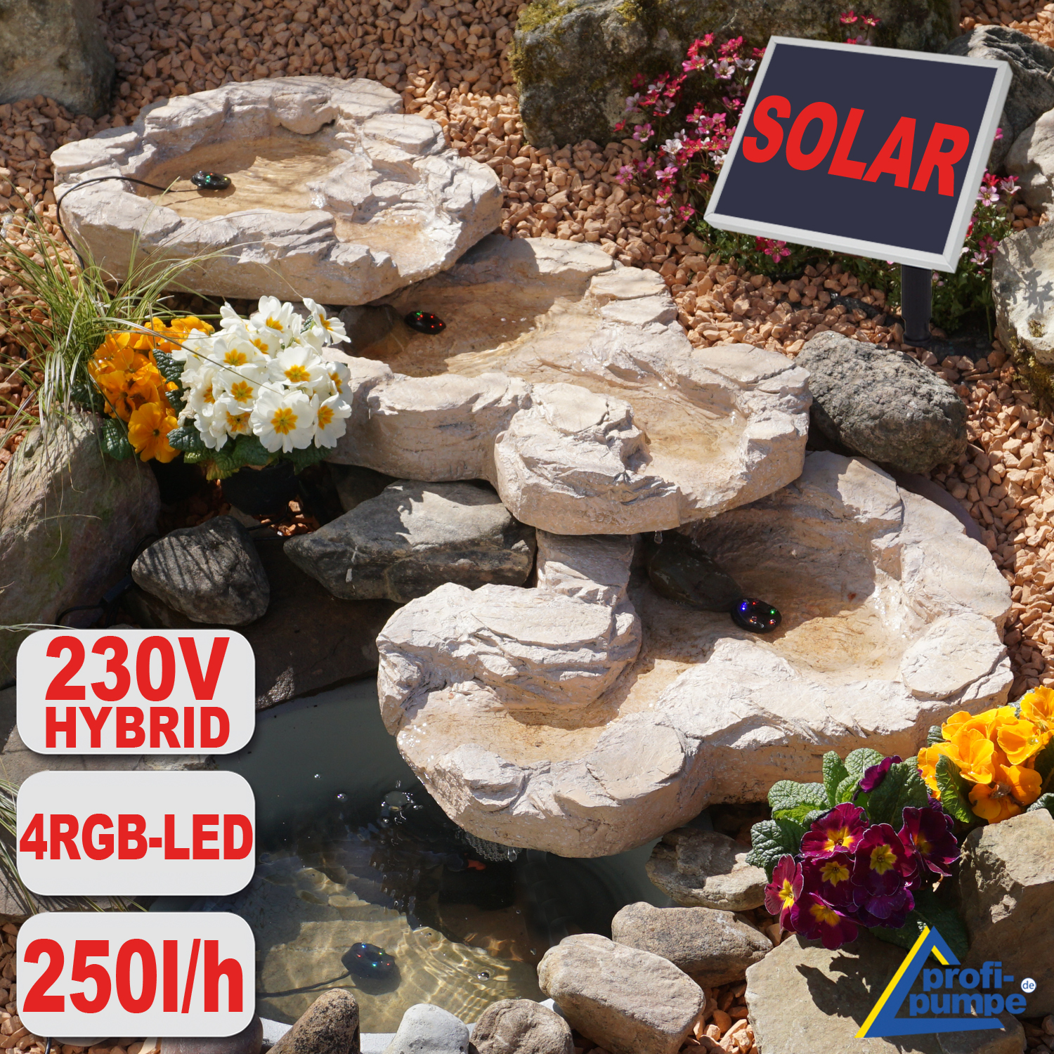 Bachlauf QUELLBACH II sandstein, 3-teilig mit 4 RGB LED-Licht-230V / Solar-Modul