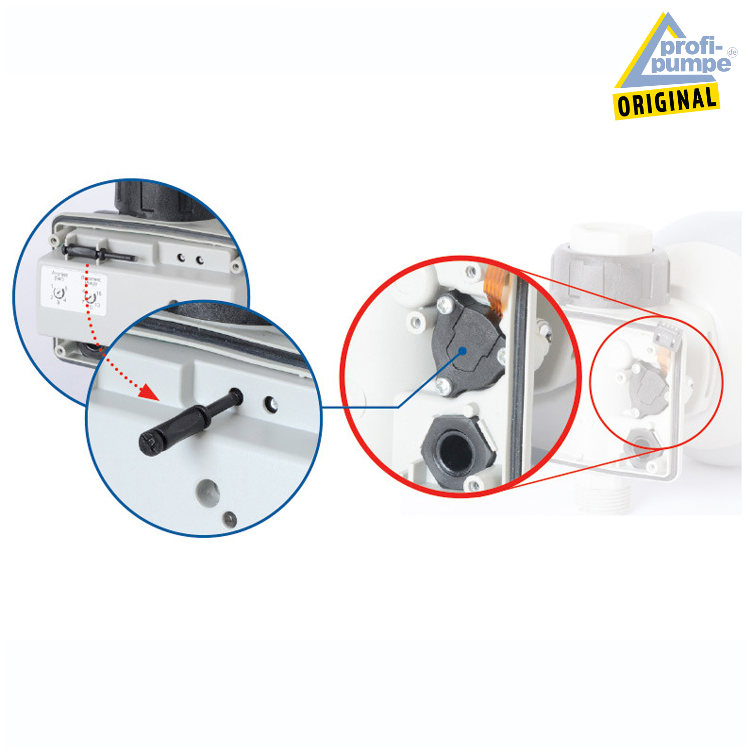 Bei Einsatz von jeglichen Pumpen-Schaltgeräten empfehlen wir dringend vor dem Schaltgerät stets einen effektiven Vorfilter/ Kartuschenfilter einzusetzen. Dadurch lassen sich Probleme, die auf die Wasser-Verschmutzung zurück zu führen sind, deutlich reduzieren. (Alle marktüblichen professionellen Schaltgeräte haben eingangsseitig ein Rückschlagventil. Setzt sich ein Schmutzkorn genau zwischen den Dichtflächen ab, funktionieren die Schaltgeräte nicht mehr einwandfrei. Die Pumpe taktet, d.h. sie geht ?an? und gleich wieder ?aus?. Die Pumpe wird heiß und geht nach kurzer Zeit durch Überhitzung kaputt. Durch einen Vorfilter/ Kartuschenfilter lässt sich dem vorbeugen.)