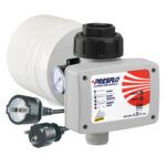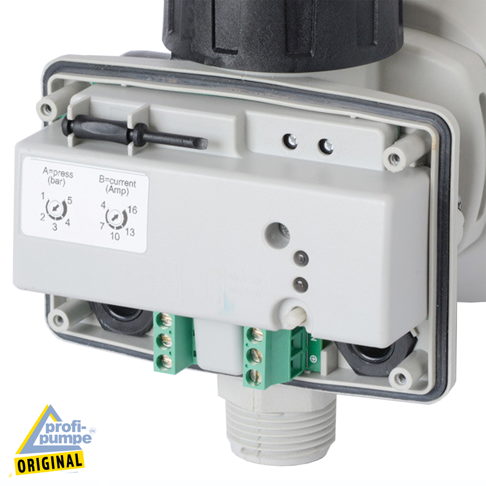 Das Besondere an dieser Pumpensteuerung PRESFLO-2-MULTI® mit integriertem Trockenlaufschutz und intelligenter Selbst-Überwachungsfunktion mit Pumpenschutz ist, dass der Betriebsdruck und der Höchststrom mechanisch eingestellt werden können; der Betriebsdruck von 1 bis 5 bar, der Stromsensor von 4 bis 16 Ampere. Die Geräte-Software überwacht die Einschaltintervalle. Bei zu häufigen “Ein-” und “Ausschaltvorgängen” in regelmäßigen Abständen wird die Pumpe nach einer fest eingestellten Zeit für eine bestimmte Pausenzeit ausgeschaltet. Nach Ablauf der Pausenzeit wird die Pumpe eingeschaltet und die Schaltvorgänge beobachtet und ausgewertet. Für viele Pumpenanwendungen ist es wichtig, daß wenn eine Störung in der Pumpe vorkommt (warum auch immer, z.b. durch Schmutzeintritt!, was manchmal unvermeidlich ist!), daß die Pumpe nicht taktet, sondern sich sicher VORHER abschaltet. Genau das macht die PRESFLO-2-MULTI®-Steuerung! Alle anderen preiswerten Schalt-Geräte haben diese Schutz-Funktion NICHT!