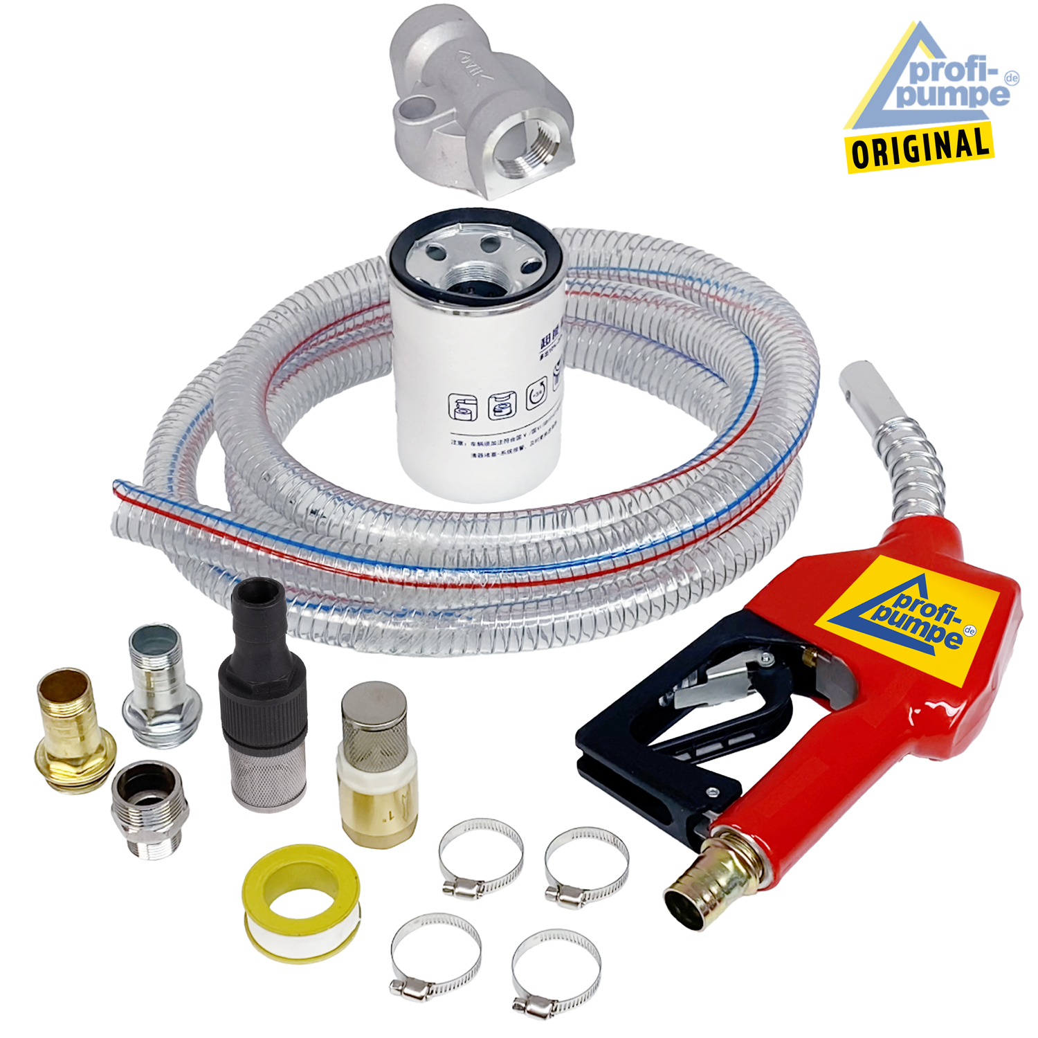 Diesel Tank Station: Set mit Pumpe, Druckschlauch-Trommel, Automatik-Zapf-Pistole, Vorfilter und Zubehör