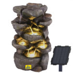 Solarbetriebener Garten-Brunnen mit Li-Ion Akku und LED-Lichter