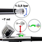 - Připojení: 0,3cm (1/8″) závit pro všechny běžné airbrush pistole