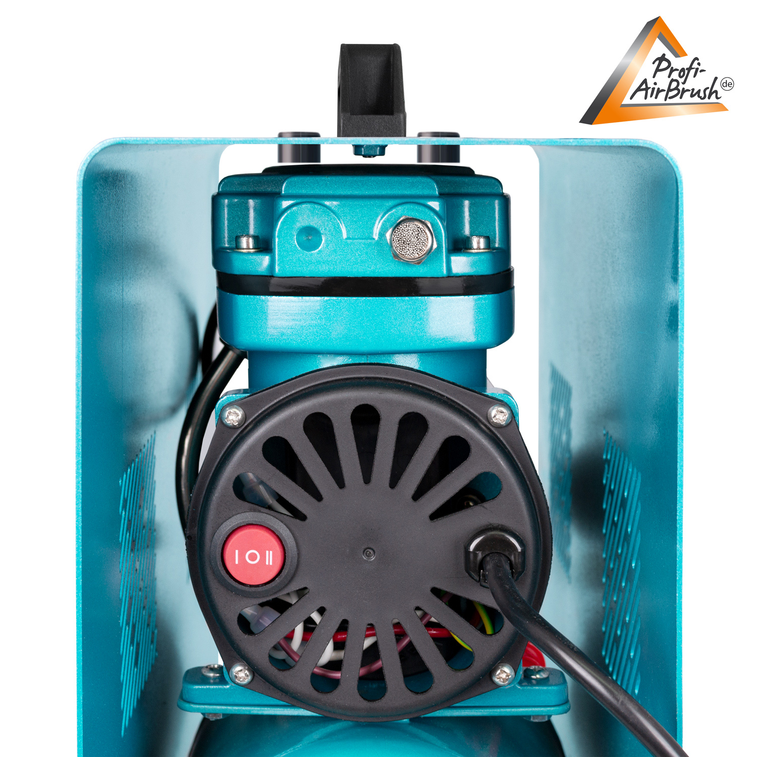 Leistungsstarker, robuster Airbrush kompresor mit Schutzgehäuse | mit 3,5L Druckkessel | max. Druck: 6bar | max. Luftabgabemenge: 30-35 l/min | 190 Watt