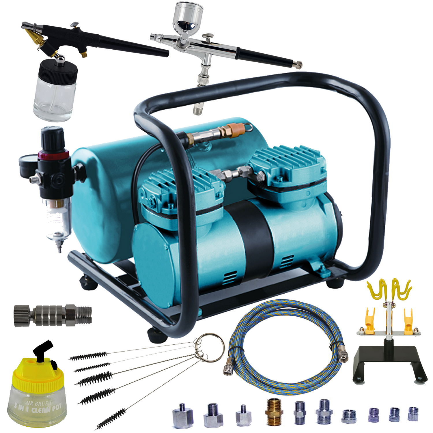 Kompresor Airbrushpistole Gravity Double-Action-Gun 134s Airbrushpistole Single-Action-Gun 138 D Adapter 10er SET Druckluftschlauch