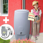 Die Regentonne “Säule” ist für jeden, der keine 0-8-15 Regentonne bei sich im Garten stehen haben will. Das Fassungsvermögen der Tonne beträgt 250 Liter.