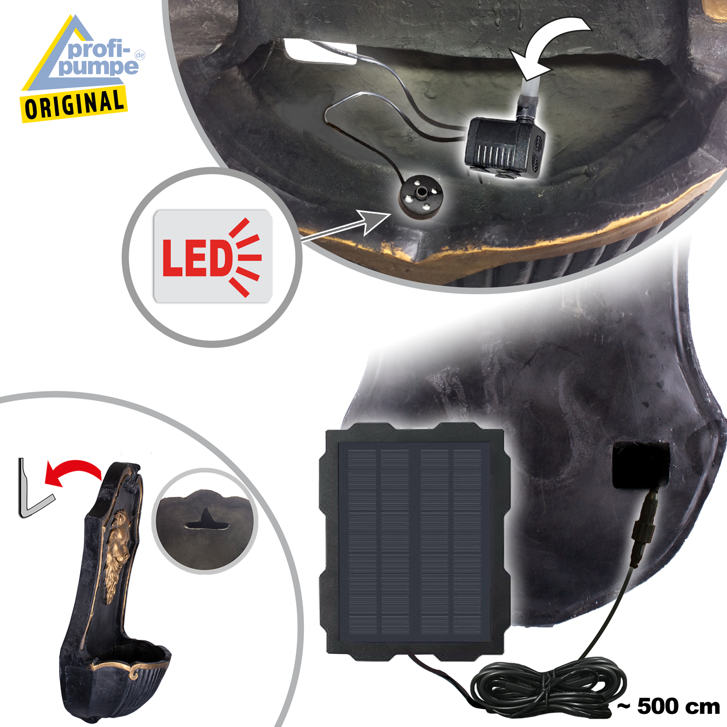 Solar – Garten- & Wandbrunnen “VENEZIANO” mit LED-Licht und Li-Ion-Akku