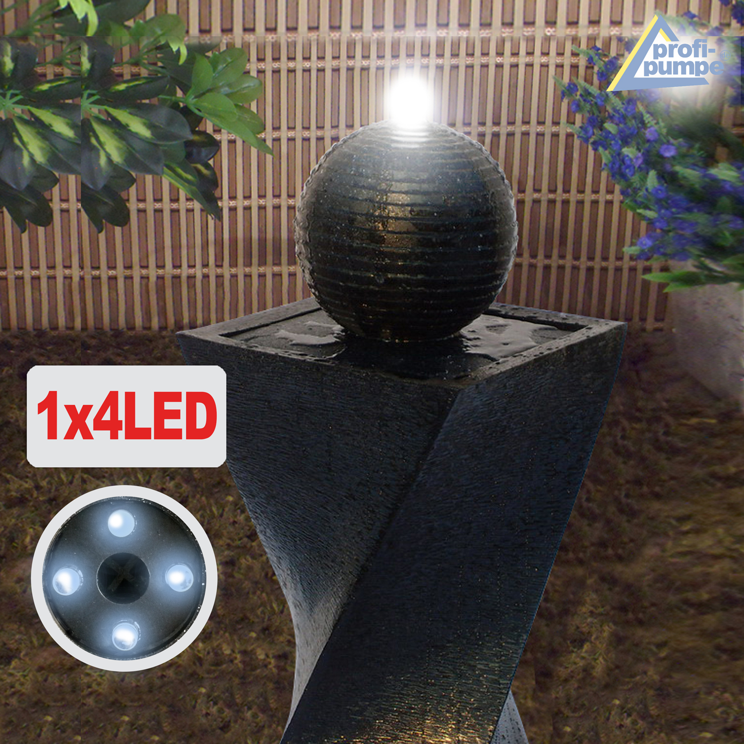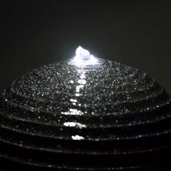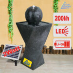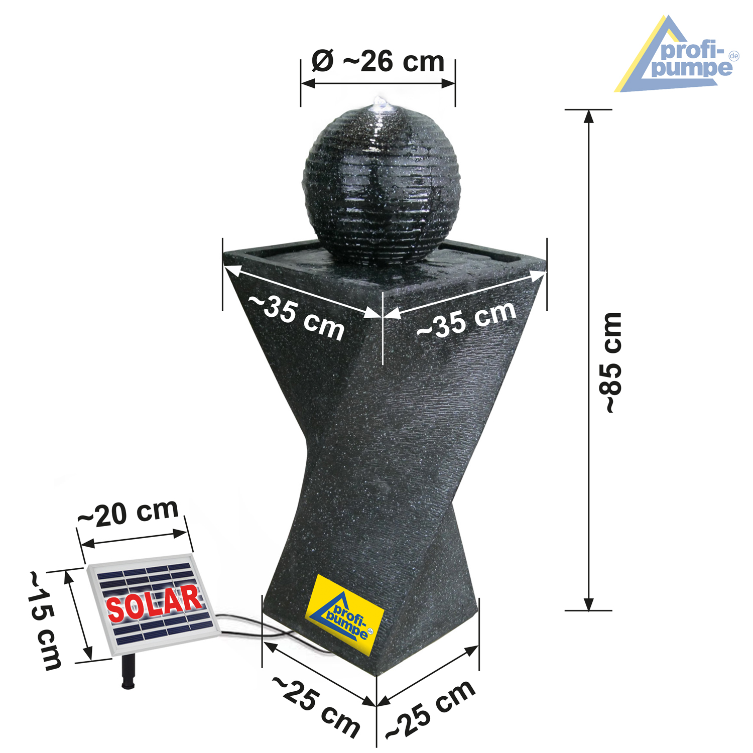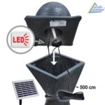 Solar Gartenbrunnen GRANIT-BLACK-2 (schwarzgrau) mit LED-Licht und Li-Ion-Akku