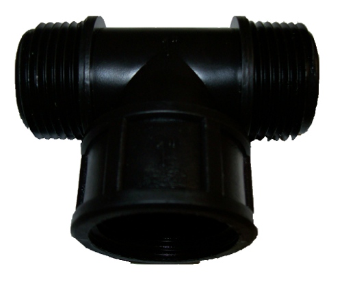 T-Stück Kunststoff 1″ Zoll AG auf 1″ Zoll AG, Abzweig 1″ Zoll IG, Länge ca. 75mm x 58mm