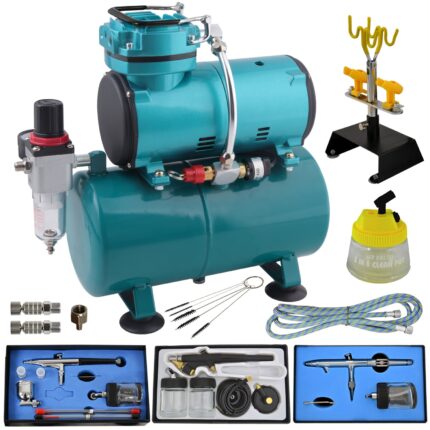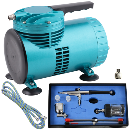 Robuster Airbrushkompressor mit viel Leistung / max. Druck: ca 2,8 bar / max. Luftabgabemenge: 65-68 L/min / 190 Watt / inklusive 1 Profi Universal Airbrush Pistole "Double-Action Gun 134s" / Airbrushpistole Profi-AirBrush Spray-Gun-2001 / 1,8m Schlauch