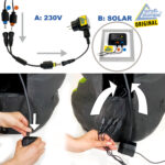 - Hybrid-Betrieb für 230V und Solar-Strom (Tag und Nacht-Betrieb) (mit Solarmodul aus der Zubehör-Auswahl)