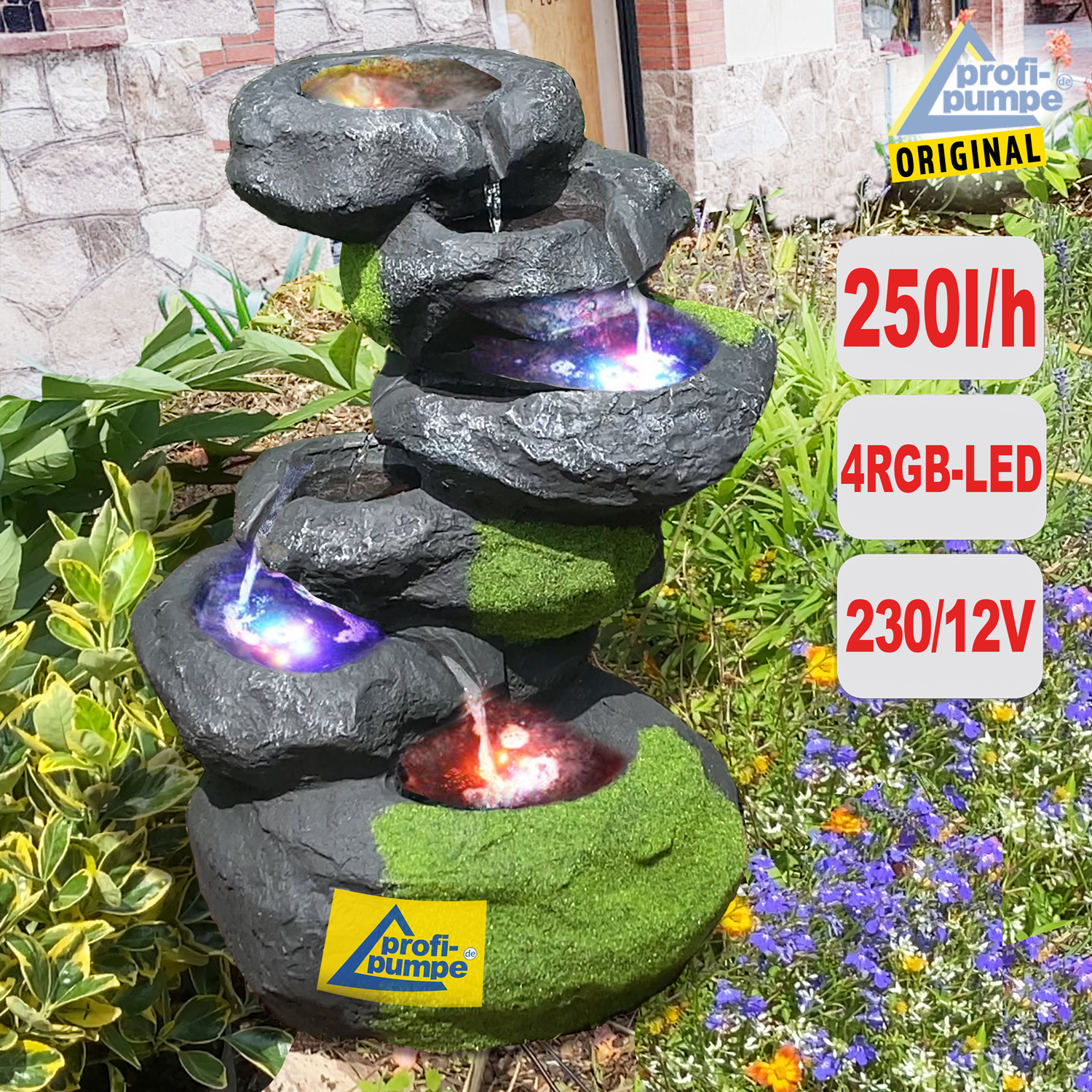 Gartenbrunnen FELS-KASKADE geschwungen mit 4 RGB LED-Licht-230V