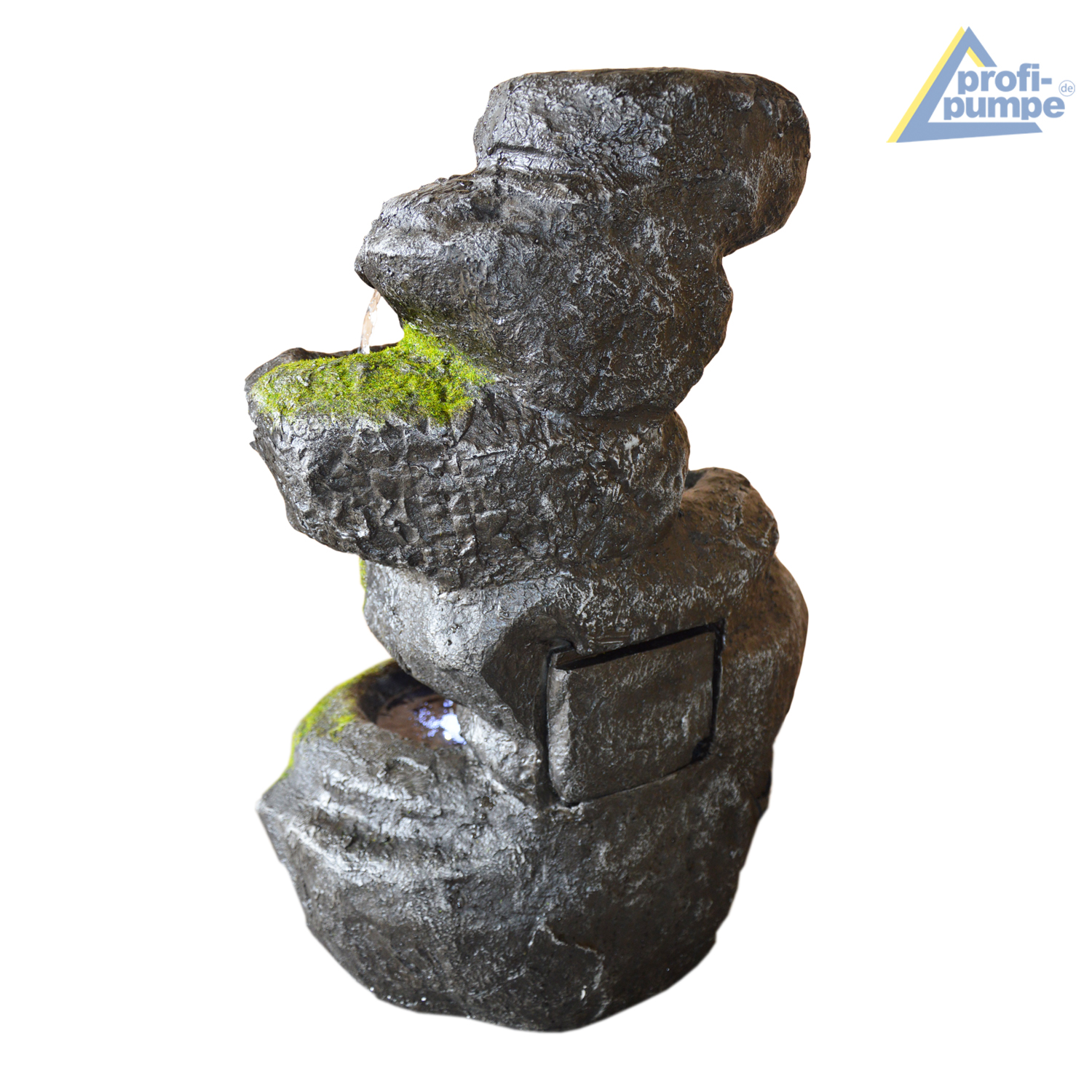 230V – Gartenbrunnen FELS-KASKADE geschwungen mit 4 RGB LED-Licht-230V