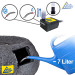 Note: Frost kann zu Schäden am Gartenbrunnen und der Pumpe führen. Bei Frostgefahr muss der Gartenbrunnen und die Pumpe entleert werden, mit klarem Wasser gespült und trocken eingelagert werden. Dann haben Sie sehr lange Freude daran!