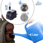 Note: Frost kann zu Schäden am Gartenbrunnen und der Pumpe führen. Bei Frostgefahr muss der Gartenbrunnen und die Pumpe entleert werden, mit klarem Wasser gespült und trocken eingelagert werden. Dann haben Sie sehr lange Freude daran!