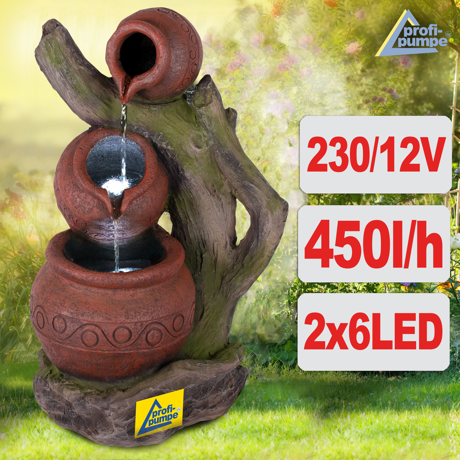 • LED-Gartenbrunnen für den Innen- und Außenbereich mit 230/12V-Netzadapter