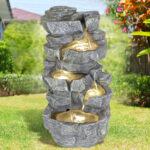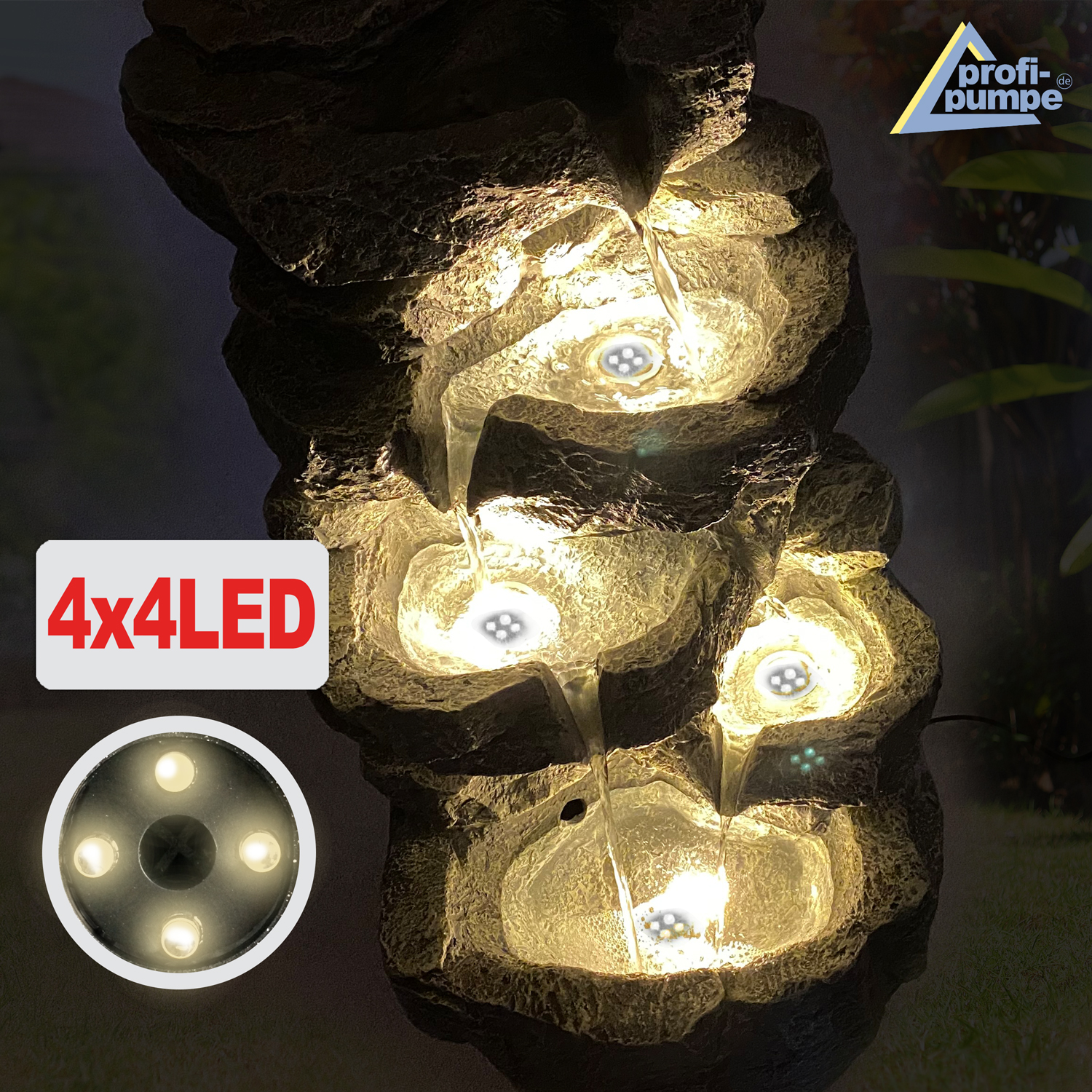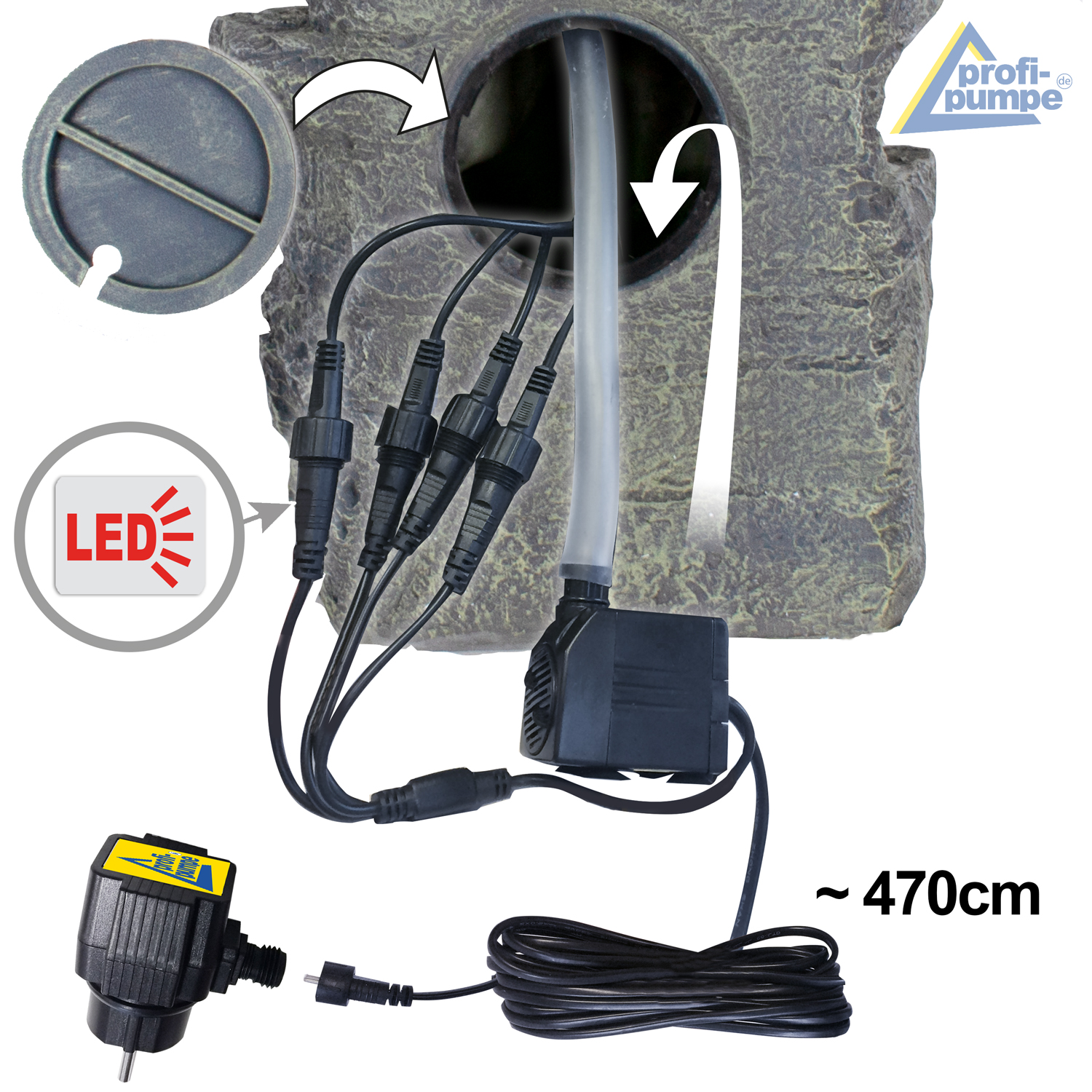 Gartenbrunnen MÄRCHEN-FELS mit LED-Ring (4×4) und 230/12V-Netzadapter. Für den Innen- und Außenbereich.
