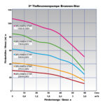 Die maximale Förderleistung der Brunnenpumpe beträgt (Qmax.) 4.200l/h, die maximale Förderhöhe (Hmax.) 29m und der maximale Druck liegt bei max. 2,9 bar. Bitte beachten Sie, dass die Förderleistung bei steigender Förderhöhe entsprechend abnimmt.
