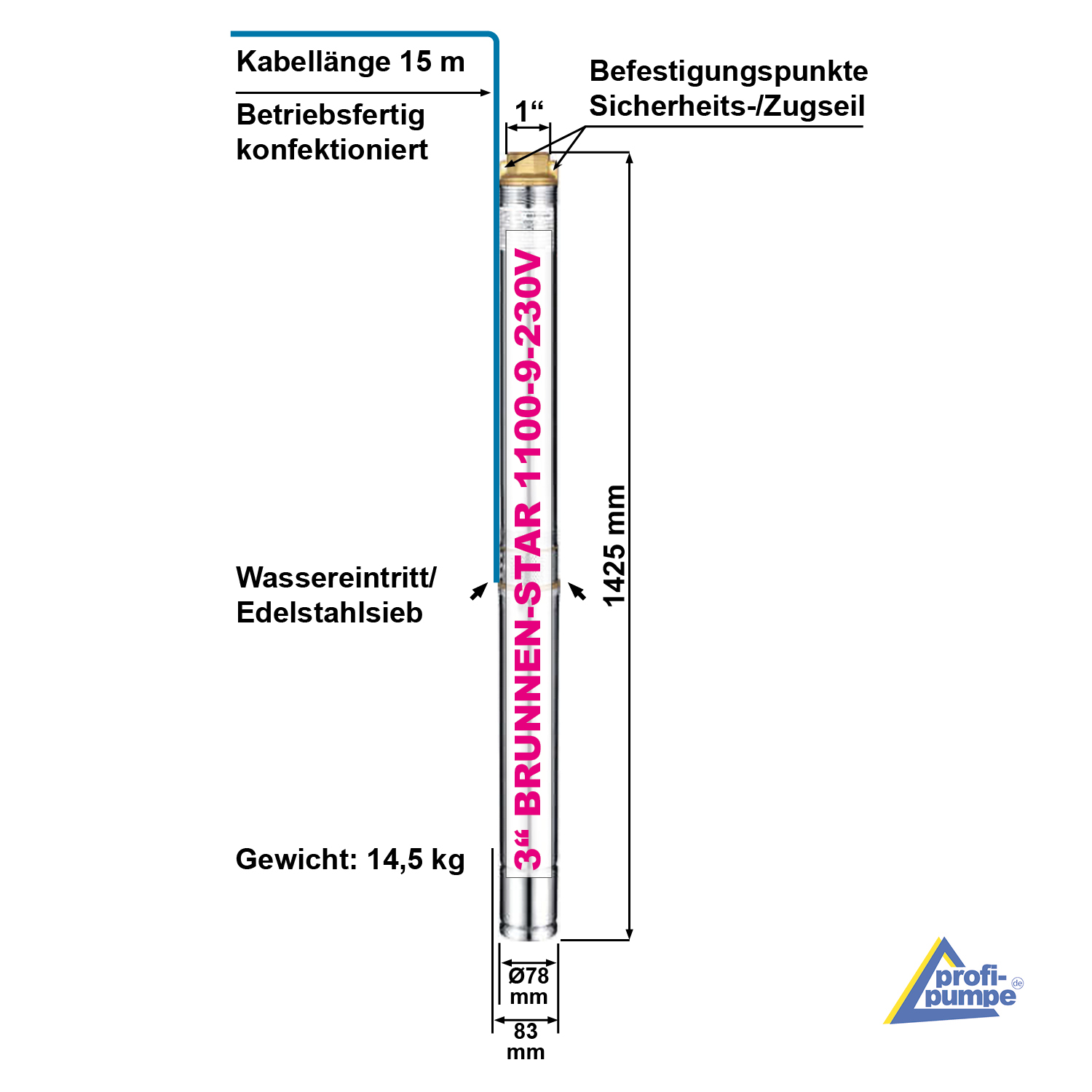 3″ Tiefbrunnenpumpe BRUNNEN-STAR 1100-9-230V