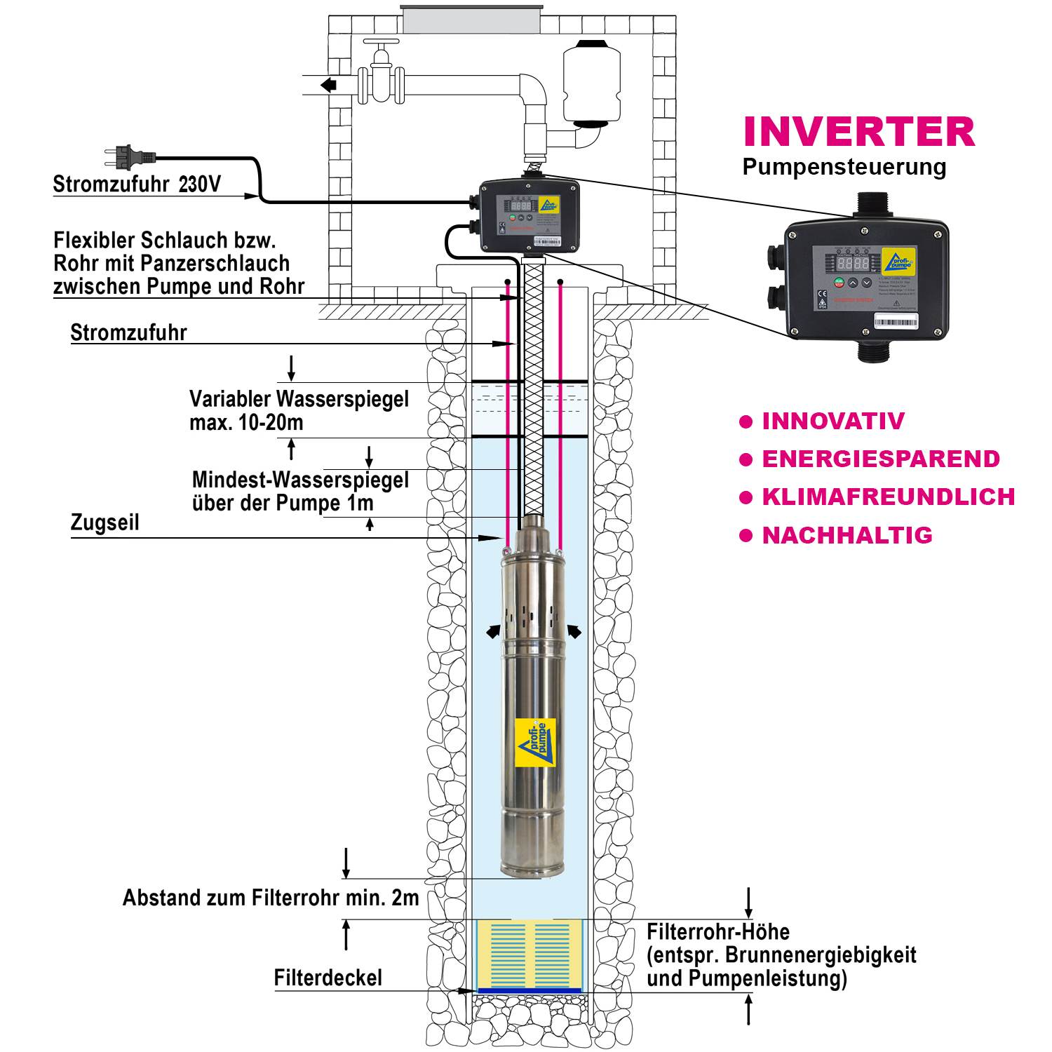 - für extrem tiefe Brunnenbohrungen (bis zu 70m)