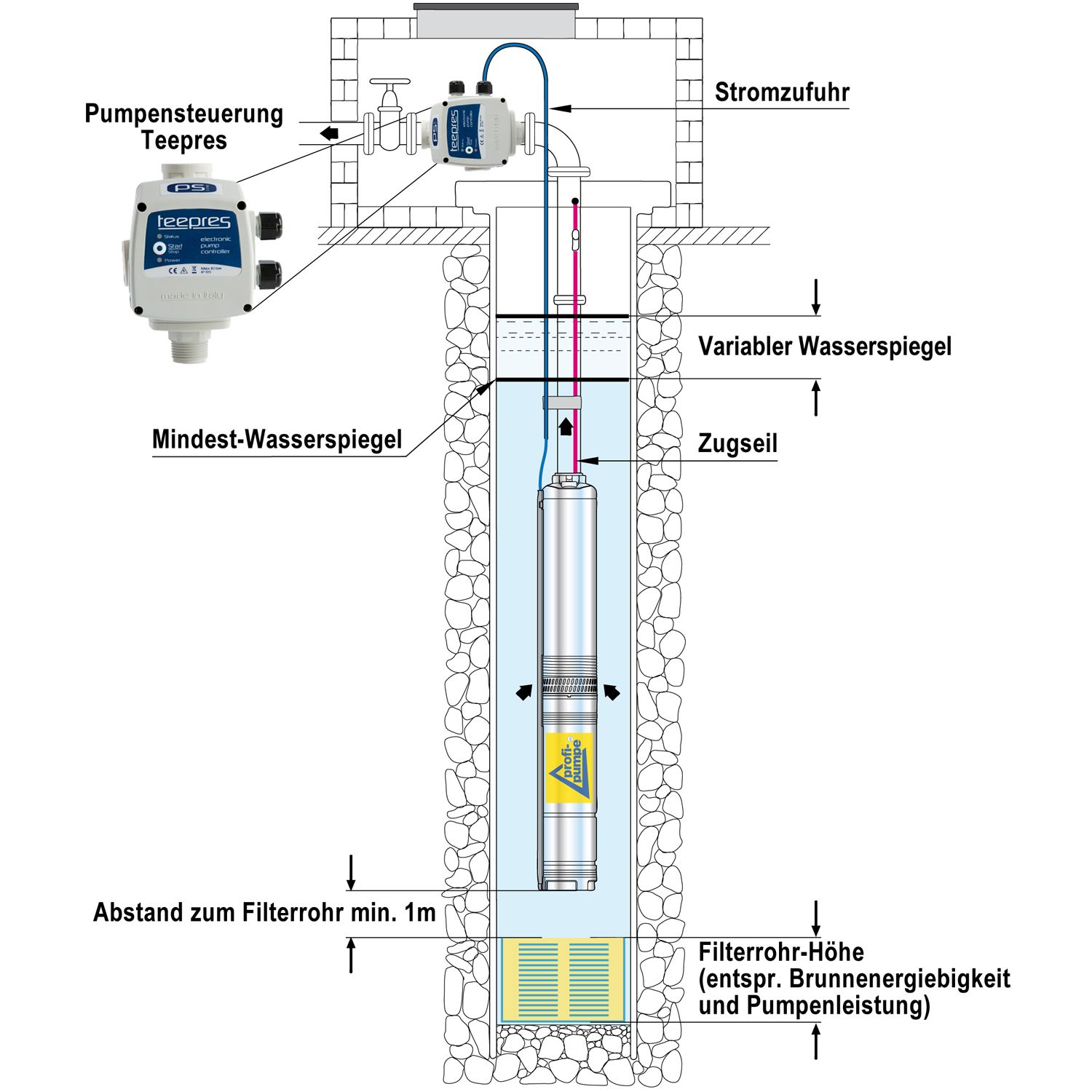 - hochwertige, leistungsstarke & bedingt sandverträgliche Brunnenpumpe