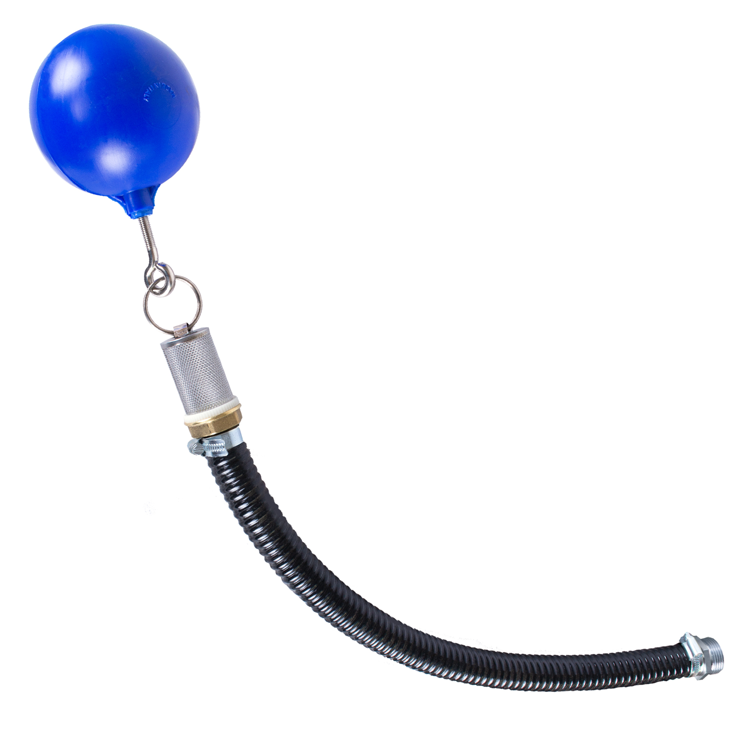 Der Ansaugkorb ist an einer Schwimmerkugel befestigt und saugt etwa 10cm unter der Wasseroberfläche sauberes Regenwasser an. Der grobmaschige Ansaugkorb (ca. 1mm) verhindert eine rasche Zusetzung und vorzeitige Pumpenausfälle.