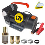 Dieselpumpe mit 2 Tüllen und mit Klemmen zum Anschluss an 12-Volt-Batterie
