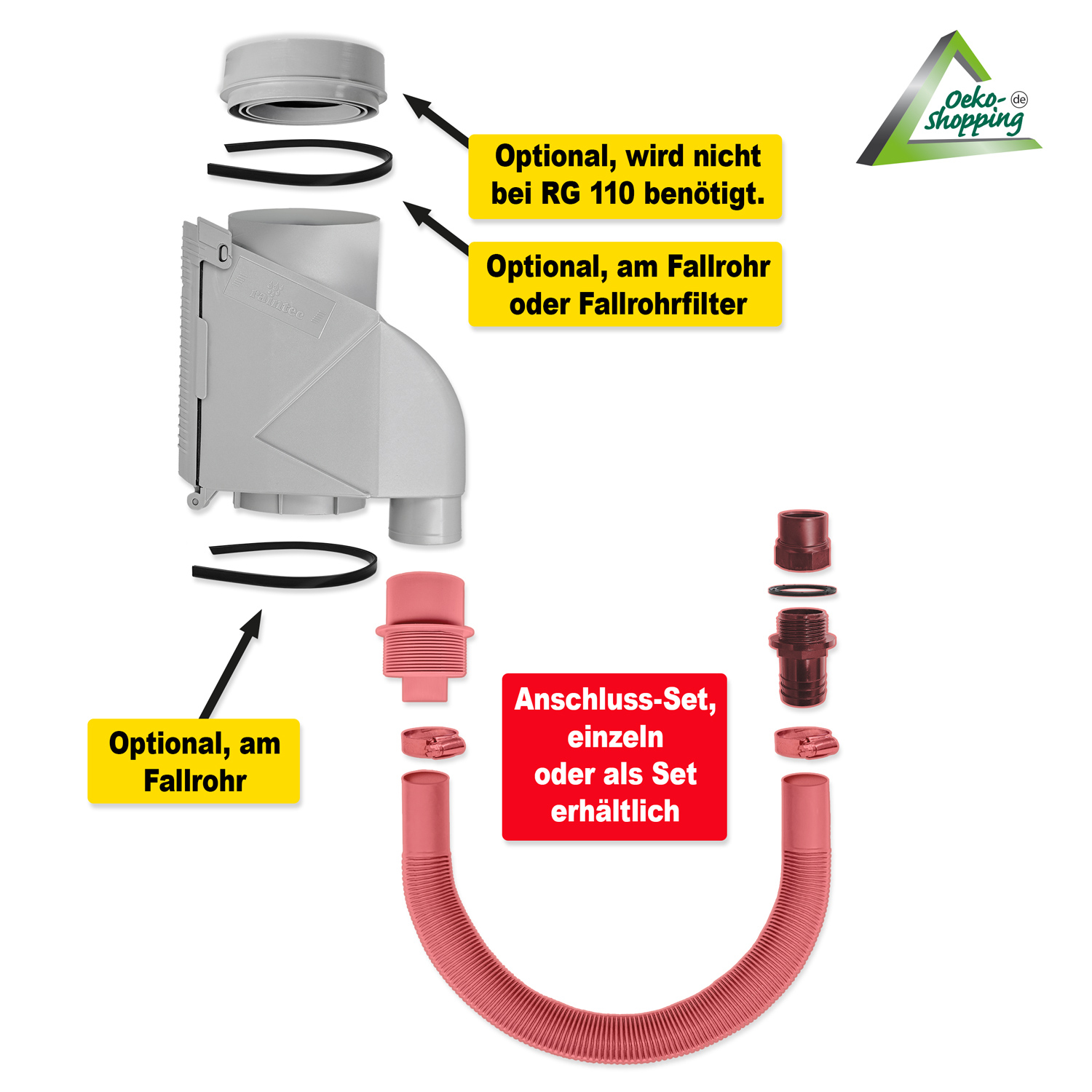 alternativ Anschluss-Set (Sonder-Zubehör) zum Anschluss an die Regentonne - Füll-Stopp-Automatik — kein Überlaufen der Regentonne