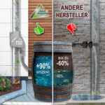 Der Filter ist mit einer “Füll-Stopp-Automatik” ausgestattet. In der entsprechenden Höhe in das Fallrohr eingebaut (Montageanleitung beachten) sorgt der Filter automatisch dafür, dass die Regentonne nicht überläuft. Dadurch werden teuere Wasserschäden an Haus und Kellerwand zuverlässig vermieden.