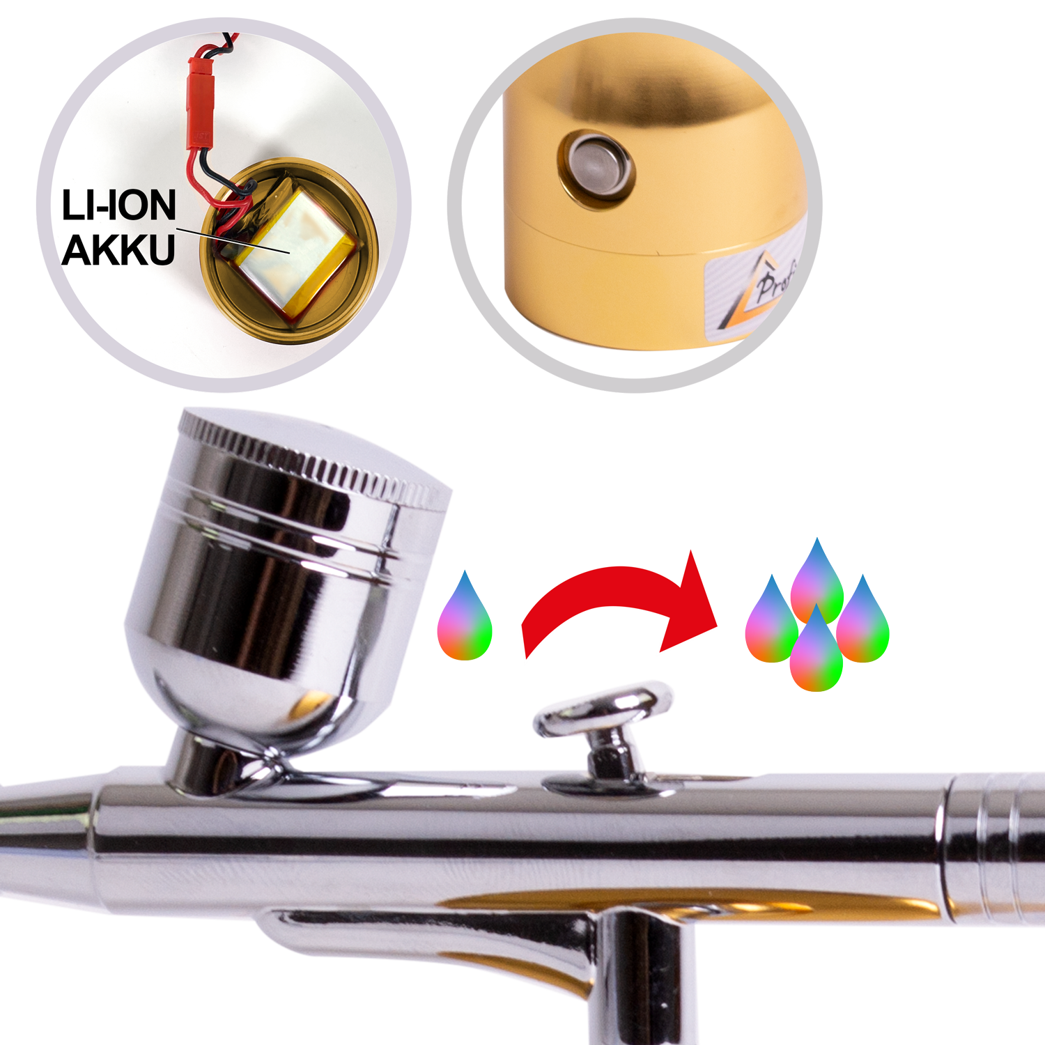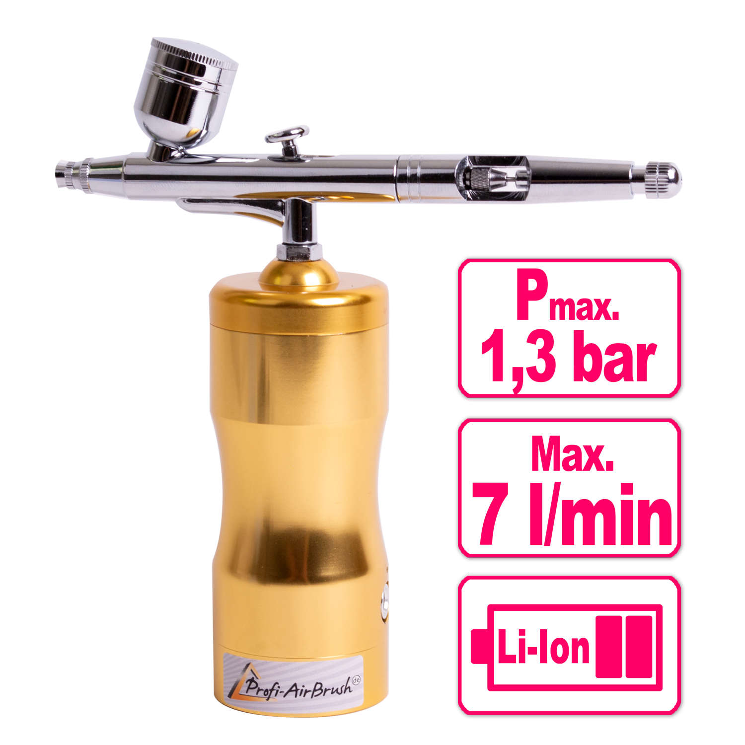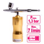 Der handliche Airbrush-Kompressor AirBrush ACCU-Star II GOLD überzeugt durch seine durchdachte All-in-One-Bauweise.