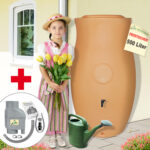 Wo gibt’s denn sowas – Regentonne mit Pflanzschale! inkl. Füllstandsanzeige & Auslaufhahn Fassungsvermögen: 500L Farbe: terrakotta Höhe: 146cm Mediterranes Flair…