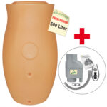 Regenfass mit Pflanzschale – Amphore Maja 500l terrakotta – zzgl. Fallrohrfilter T33