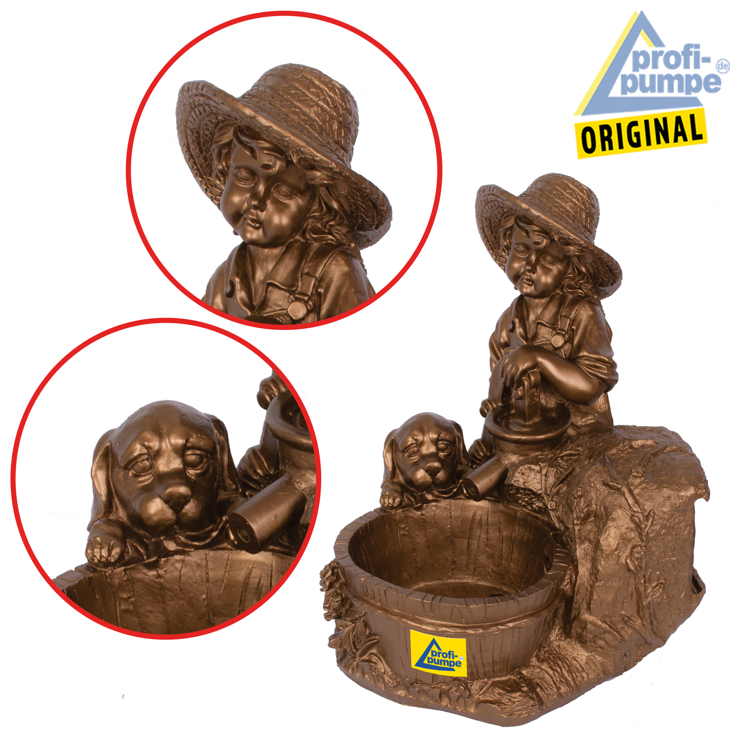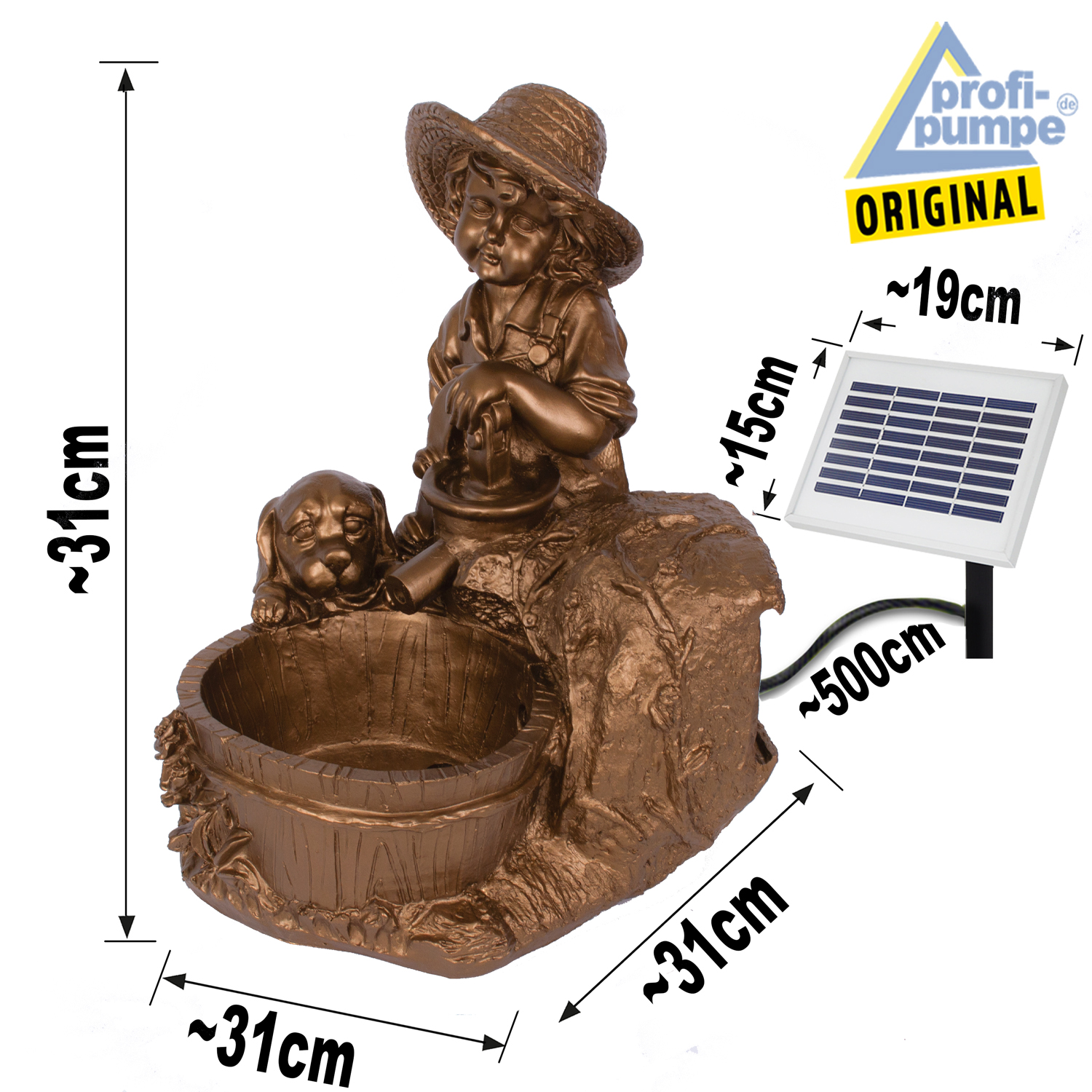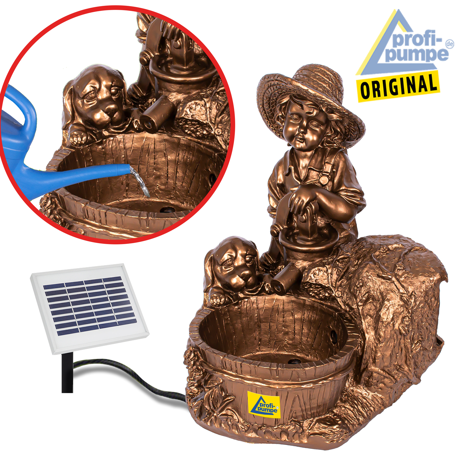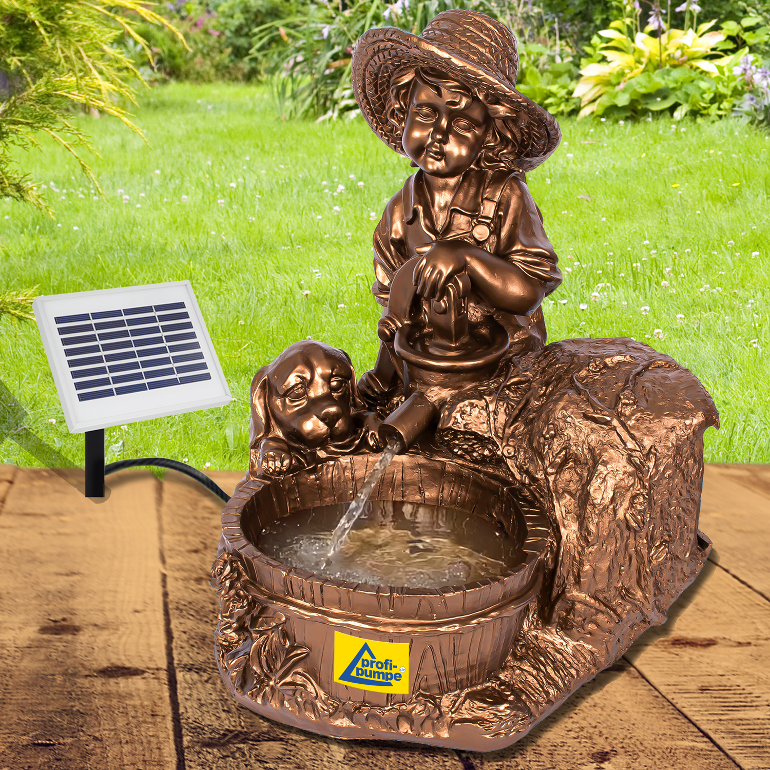 Solar Teichpumpen-Set “KNABE mit HUND am BRUNNEN” – Das Lebensgefühl für Ihre Sonnen-Oase!