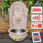 Solarbetriebener Garten-Wandbrunnen mit Li-Ion Akku und LED-Licht