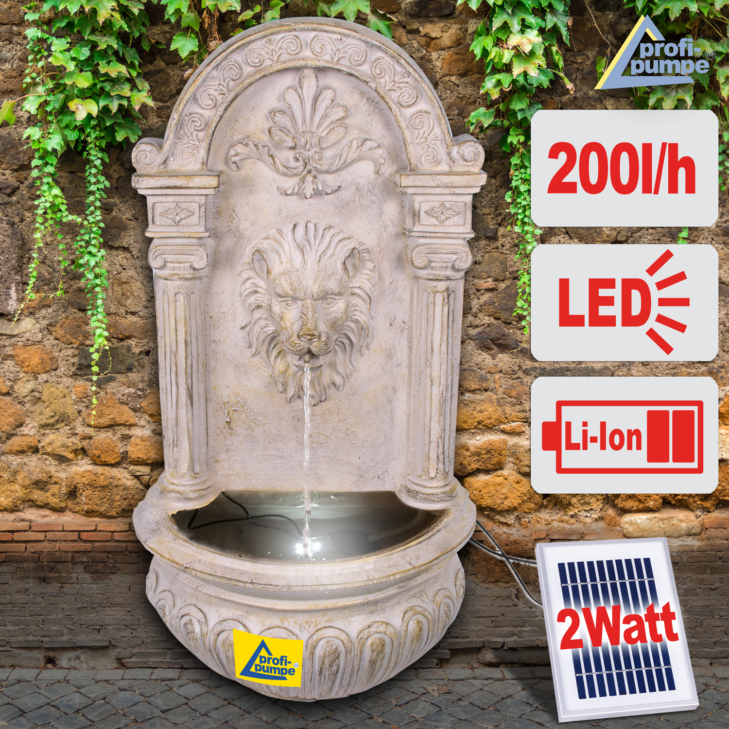 • 1 Stk. Solar-Garten-Wandbrunnen Solar Garten-Wandbrunnen”LÖWEN-BRUNNEN” mit Li-Ion Akku und LED-Licht