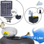 Dieser Solar Gartenbrunnen hat im Solar-Panel einen eingebauten Li-Ion Akku. Deshalb kann dieser Solar-Brunnen auch nach Sonnenuntergang oder auch bei schlechten Lichtverhältnissen betrieben werden. Die maximale Förderleistung wird bei ausreichenden Lichtverhältnissen und geladenen Akku erreicht. Wenn es gute Lichtverhältnisse gibt, kann die Pumpe automatisch wieder in den Solarmodus schalten. Die Akku-Funktion kann auch ausgeschaltet werden.