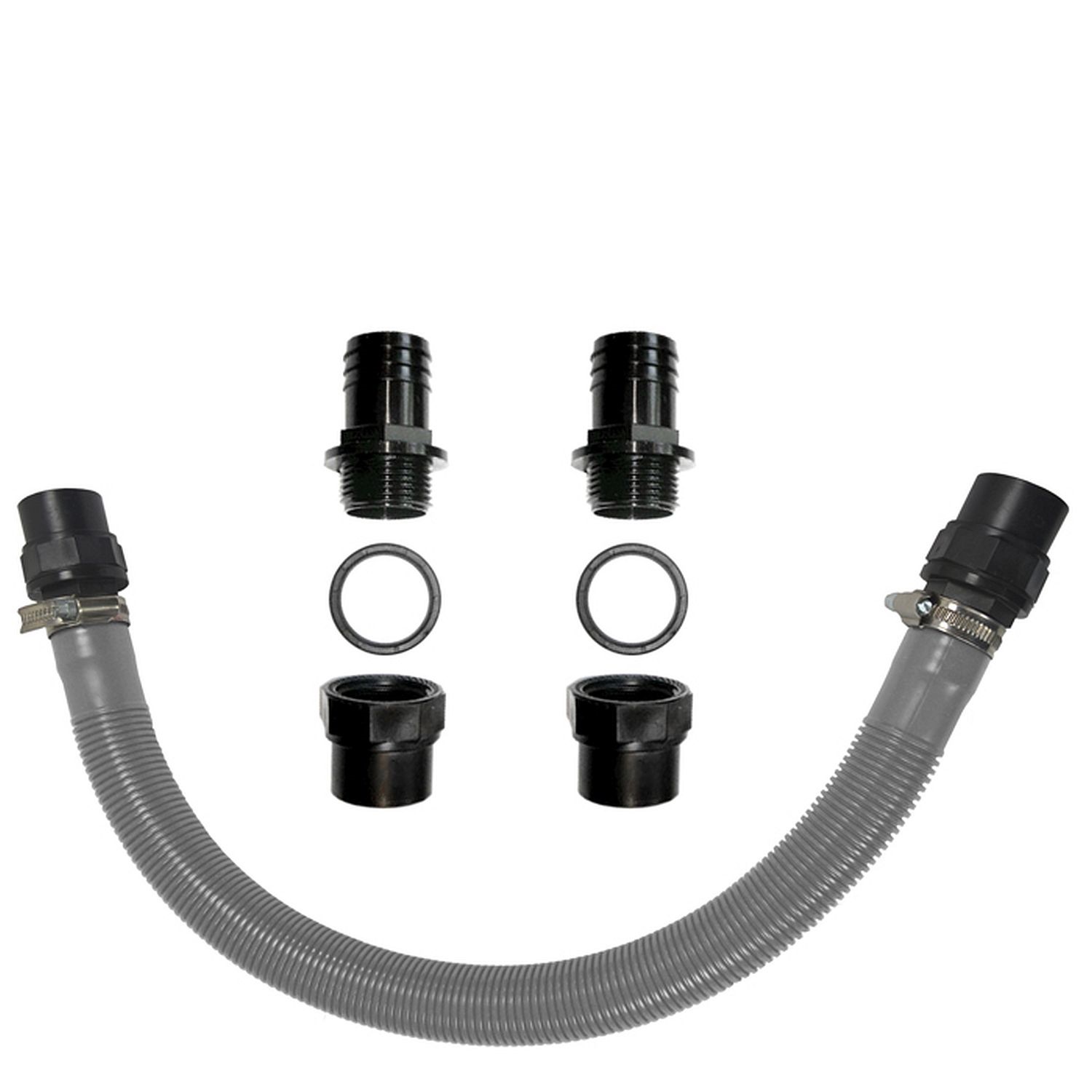 Set bestehend aus: PE-Well-Schlauch in grau ca. 60cm lang (E 3,2cm 5/4 Zoll), 2 Stk. Wanddurchführung 3,2 cm (5/4 Zoll) und komplettem Anschluss-Zubehör.