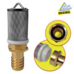 Der Ansaugkorb ist an einer Schwimmerkugel befestigt und saugt etwa 10cm unter der Wasseroberfläche sauberes Regenwasser an. Der grobmaschige Ansaugkorb (ca. 1mm) verhindert eine rasche Zusetzung und vorzeitige Pumpenausfälle.