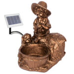 Solar Teichpumpen-Set “KNABE mit HUND am BRUNNEN” – Das Lebensgefühl für Ihre Sonnen-Oase!