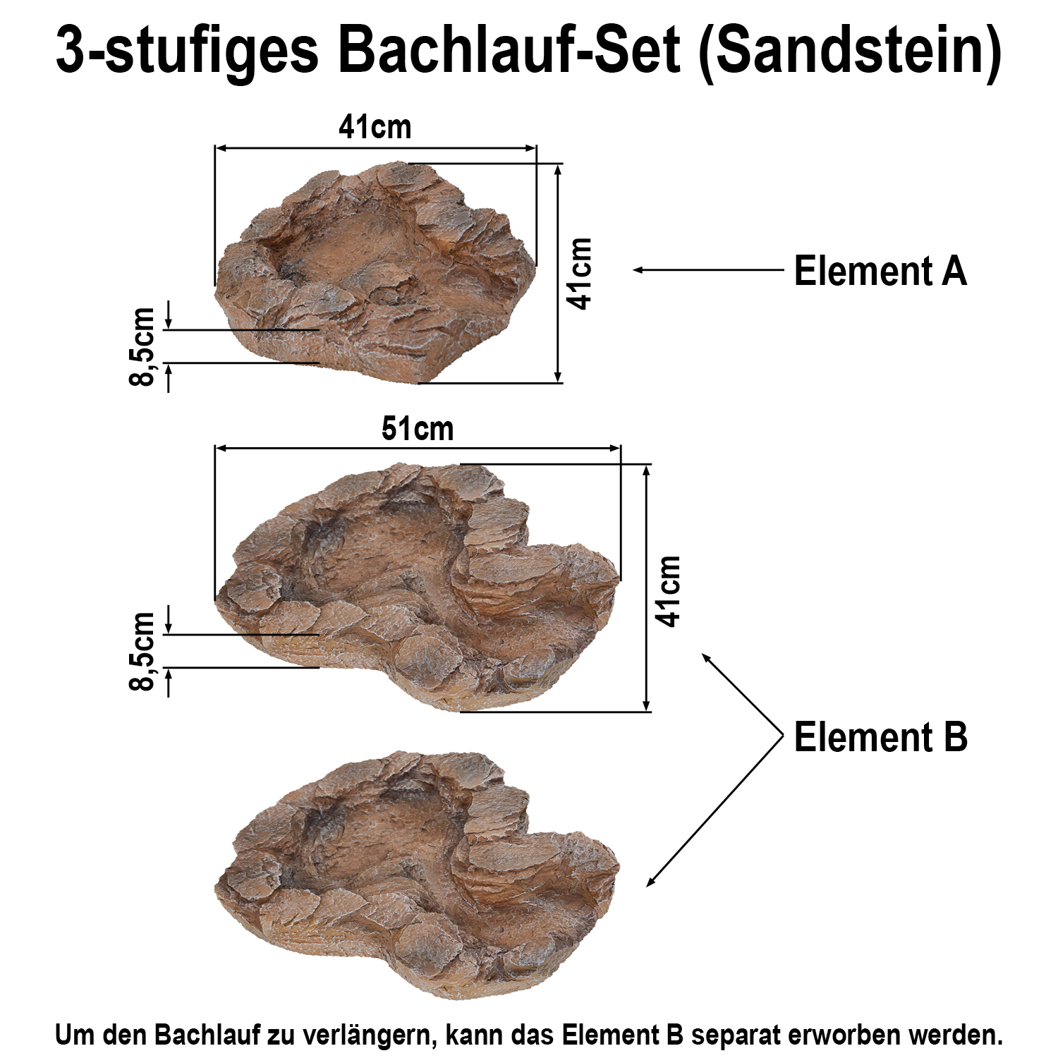 Bachlauf QUELLBACH II in sand-stein Zwei große Erweiterungs-Schalen und eine Schale (oberste Schale) – ohne Pumpe