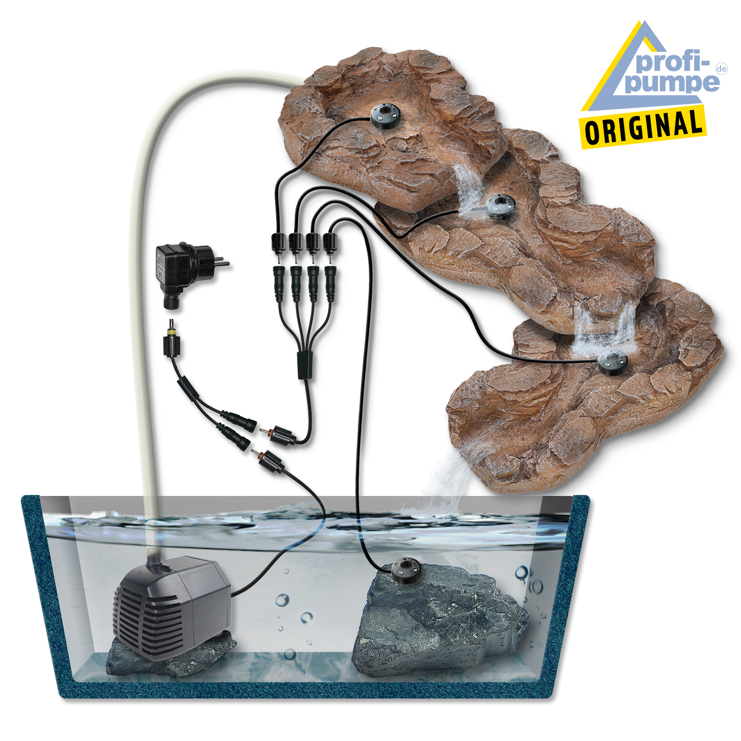 - 3-tlg. Kaskaden-Gartenbrunnen-Set zur effektvollen Bachlauf-Gestaltung