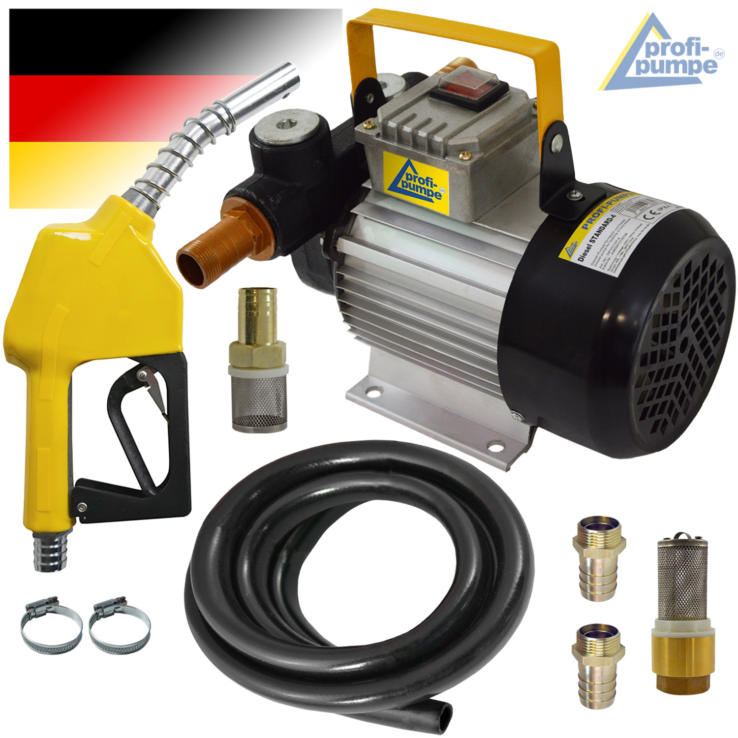 Kraftvolle Dieselförderung mit unserer elektrischen Dieselpumpe Diesel STANDARD-4, einer selbstansaugenden 230-Volt-Diesel-Pumpe. Untentbehrlich für jeden Fuhrpark , KFZ-Werkstätten, Landwirtschaft, Autoverwertung usw! Wer viele Baumaschinen zu betanken hat, wird mit unserer Diesel-Pumpe seine Freude daran haben! Hiermit betanken Sie mühelos jegliche Art von Fahrzeugen und Maschinen. Für diese Dieselpumpe ist auch das Umfüllen von Heizöltanks kein Problem. Dank dem kräftigen 370 Watt starken Motor und der Selbstansaugung ist dies schnell erledigt. Die Motorleistung von 370 Watt ermöglicht eine max. Durchflussmenge von 3600l/h und eine maximale Förderhöhe von 5 Metern. Bitte beachten: Die Fördermenge nimmt bei steigender Förderhöhe entsprechend ab.